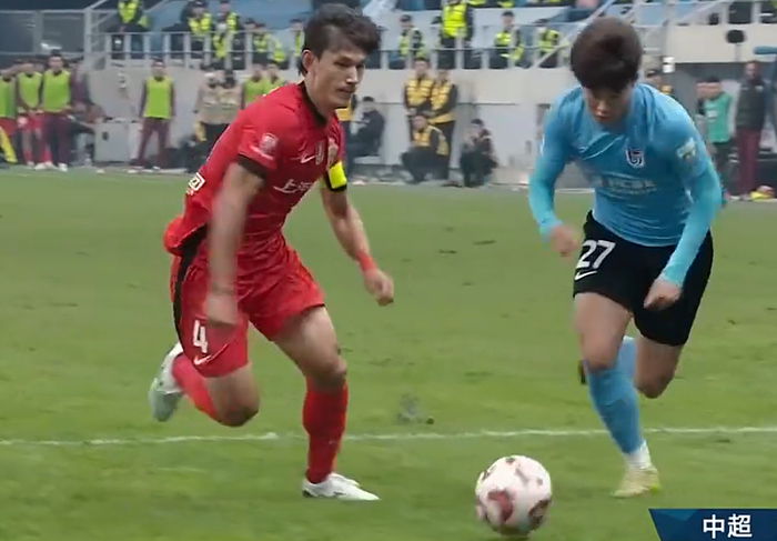 下半场,大连英博一次角球进攻投诉上海海港球员手球,VAR介入之后,主裁判没有表示,随后拉布亚德主罚任意球直接打门,皮球被颜骏凌扑了出去。