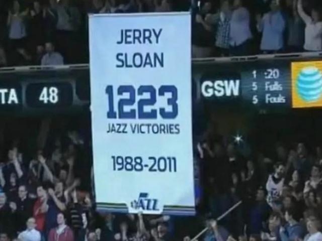 当年爵士就给斯隆退役了一件球衣,上面的数字是斯隆在爵士的胜场数。