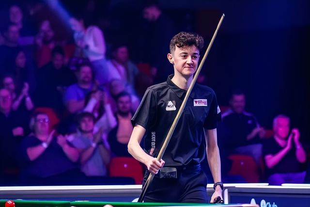傅家俊曾三次获得排名赛冠军,虽然不在巅峰期却依旧不容忽视,本场轰出单杆104分、87分、51分6-2战胜吴安仪,后者也有两杆50+的表现,傅家俊后面对阵王雨晨,竟然又是德比,张家玮1-5落后逆风翻盘,轰出单杆105分、80分、61分、51分连胜五局,最终6-5逆转弗洛里安.努勒斯。