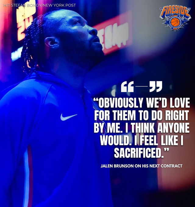 布伦森希望在2028年夏成为自由球员时公正的对待他下一份合同,因为他主动接受了大幅度降薪来帮助尼克斯组建布伦森、布里奇斯、阿奴诺比、唐斯的核心阵容。