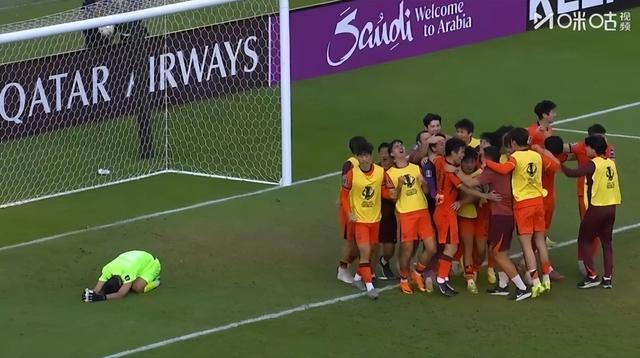 然而,李昊并未受到影响,而是飞身扑出了迪尔绍德主罚的点球。王博豪打入点球之后,所有球员冲入场内,与李昊一起庆祝,一旁则是跪在地上郁闷的乌兹别克斯坦球员。